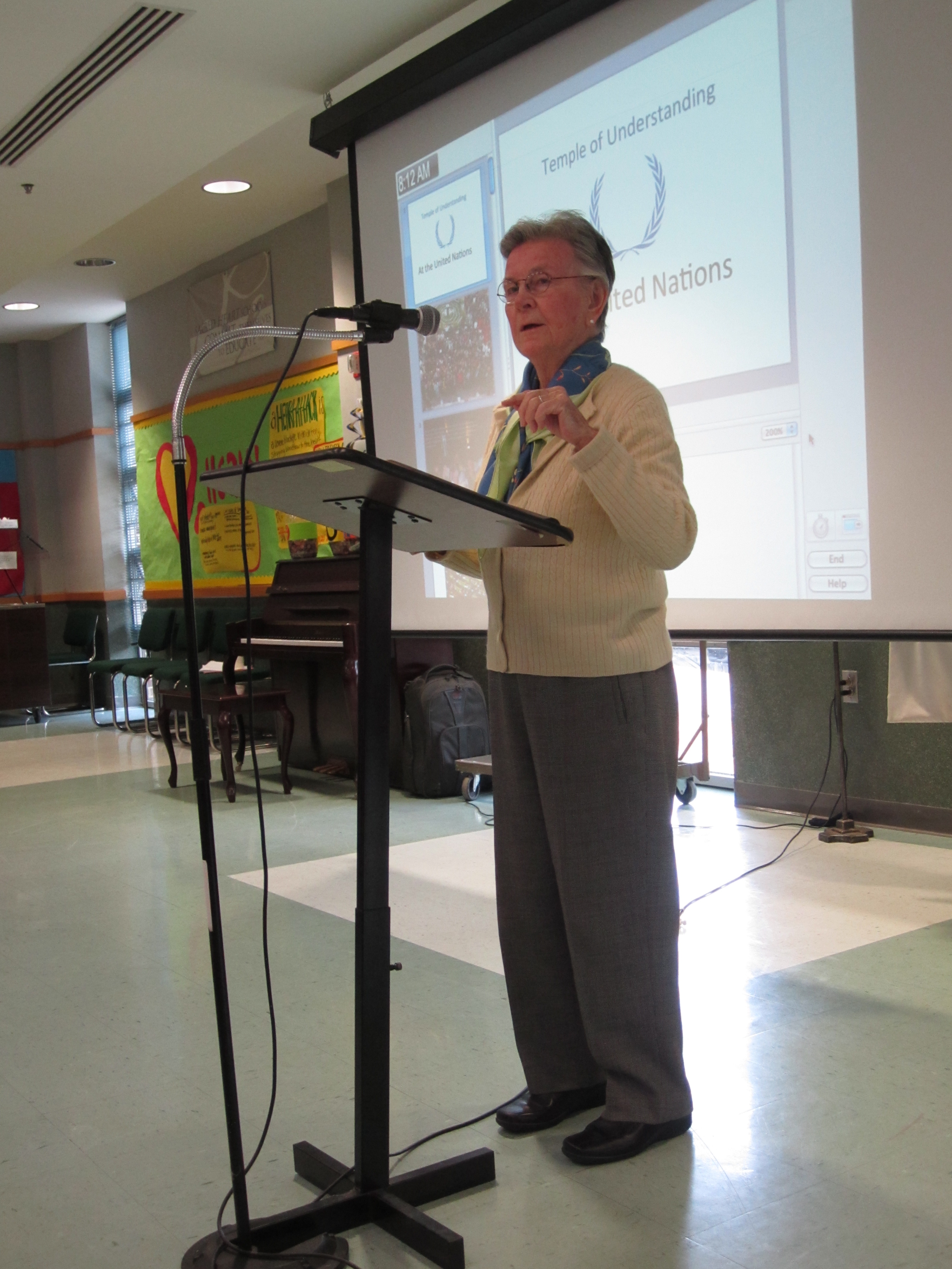 On April 20th, 2011, Stone Ridge School of the Sacred Heart had the pleasure of welcoming two activists who work closely with the United Nations in New York City. Sister Joan Kirby RSCJ and Lily Schwab both work at The Temple of Understanding, a Non-Governmental Organization (NGO) that promotes inter-religious and cross-cultural dialogue and education in the hopes of creating just and peace-filled communities.